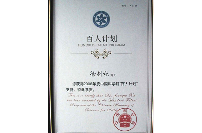 獲得2006年度中國(guó)科學(xué)院百人計(jì)劃
