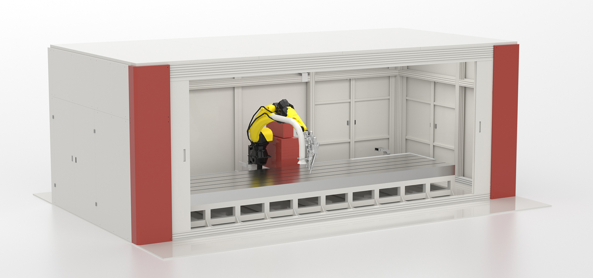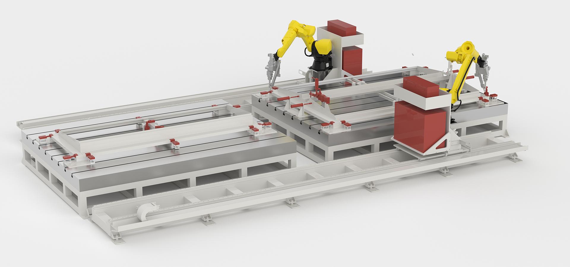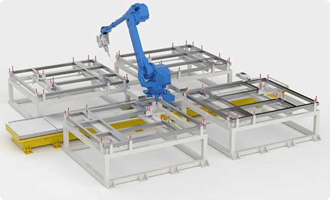 地軌式機(jī)器人鋁合金門(mén)窗激光焊接工作站—本工作站主要由機(jī)器人地軌,焊接機(jī)器人,工作臺(tái)(兩側(cè)各放置兩張工作臺(tái))組成,可兼容生產(chǎn)100+種不同規(guī)格的鋁合金門(mén)窗焊接生產(chǎn)。